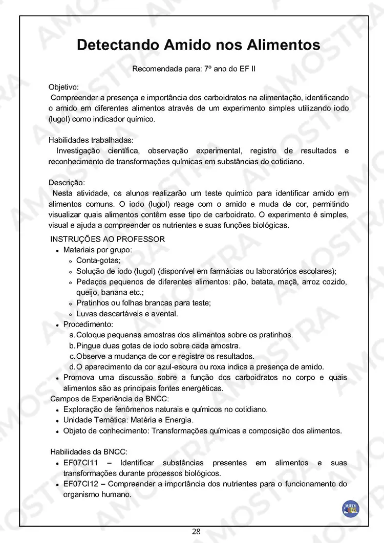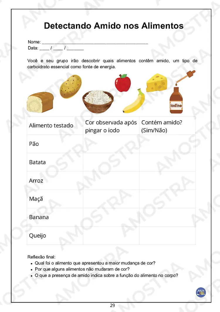 Detectando Amido nos Alimentos;