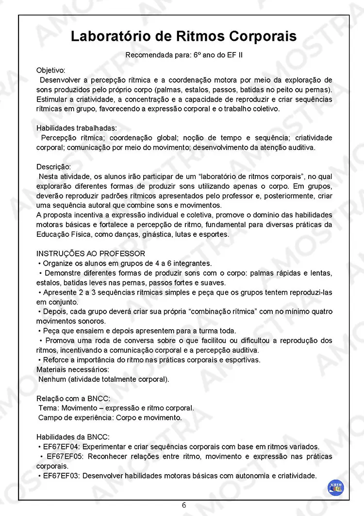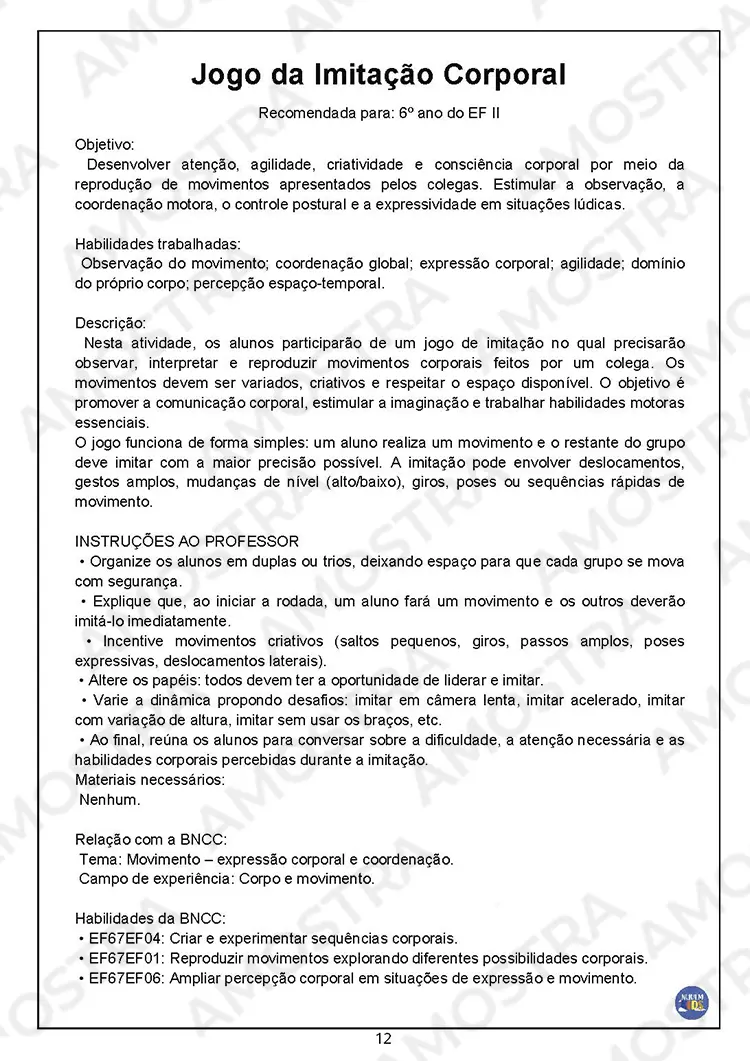 Você irá receber 70 páginas de Atividades Interativas de Educação Física contendo códigos das habilidades para todas as atividades…