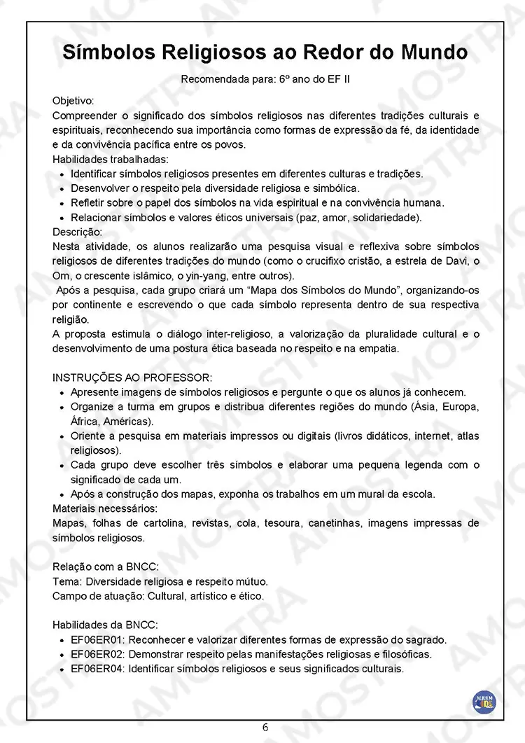 +70 pág. de Atividades Interativas de Ensino Religioso para o 6º ao 9º