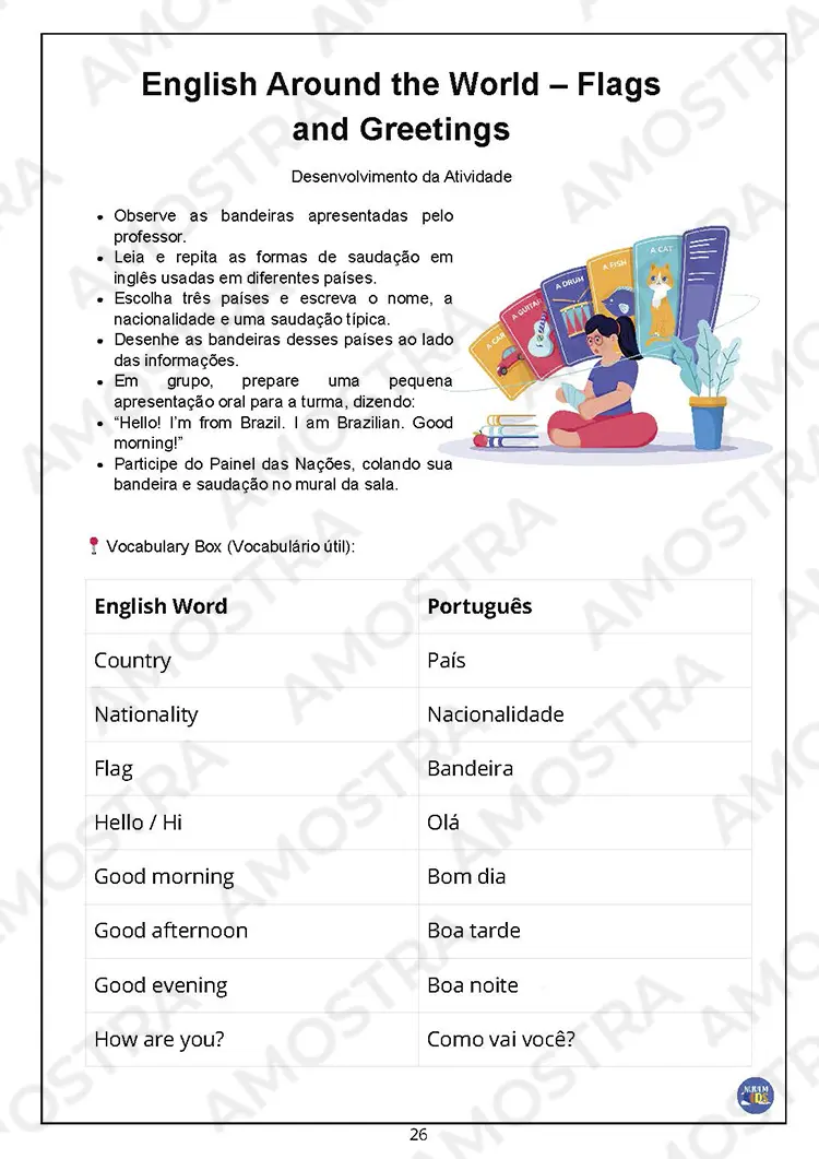 Você irá receber 70 páginas de Atividades Interativas de Inglês contendo códigos das habilidades para todas as atividades…