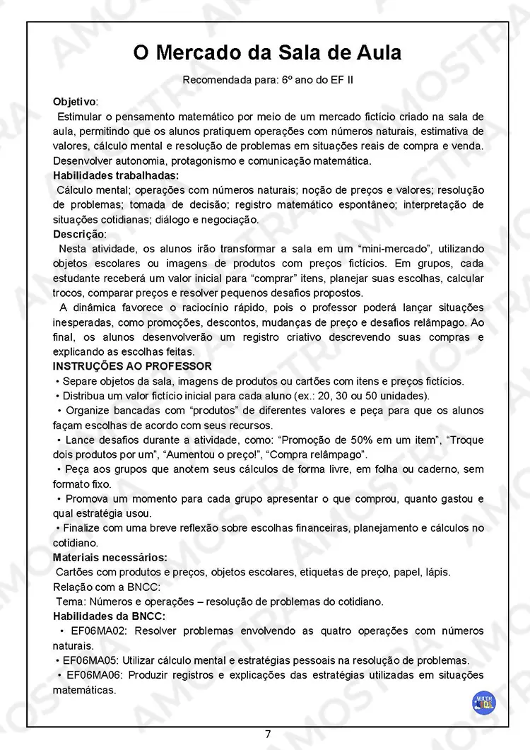 Conheça o kit que irá mudar sua rotina na sala de aula. São 70 Atividades Interativas de Matemática para o 6º ao 9º ano que contêm os códigos das habilidades da BNCC e Textos Explicativos.