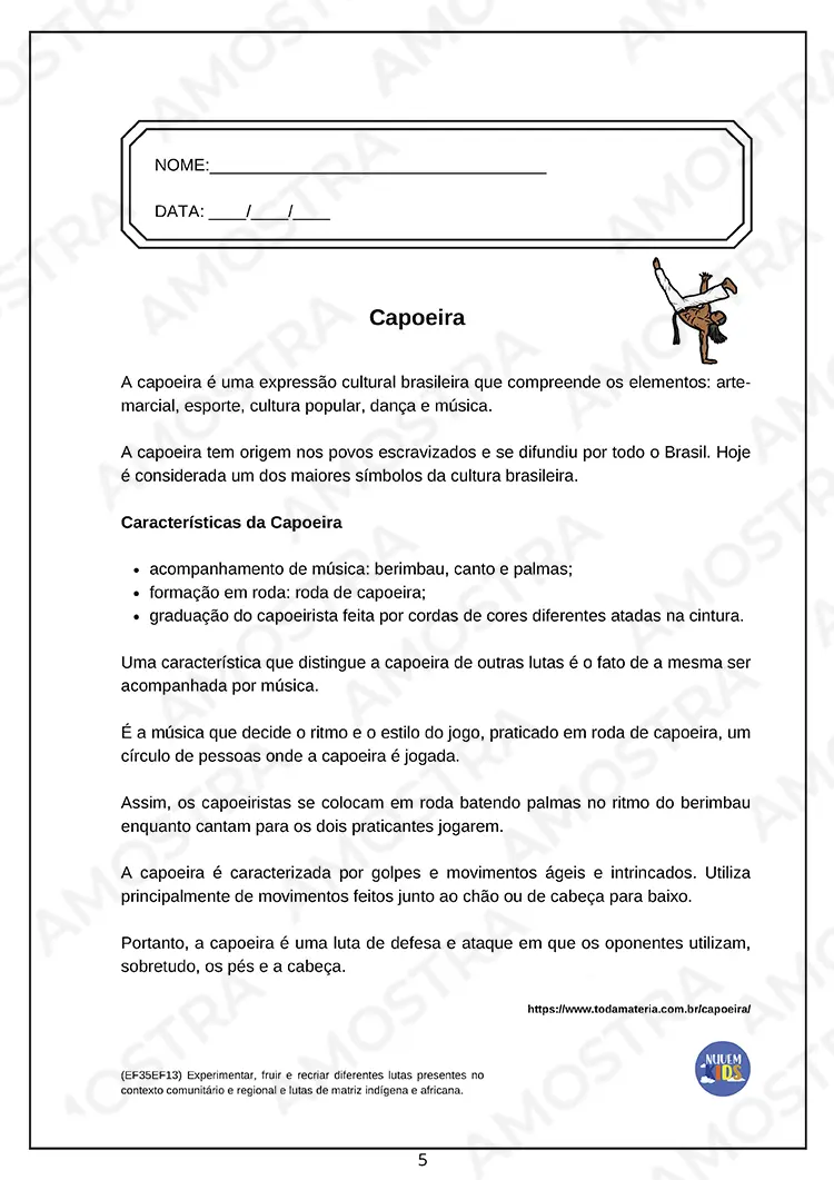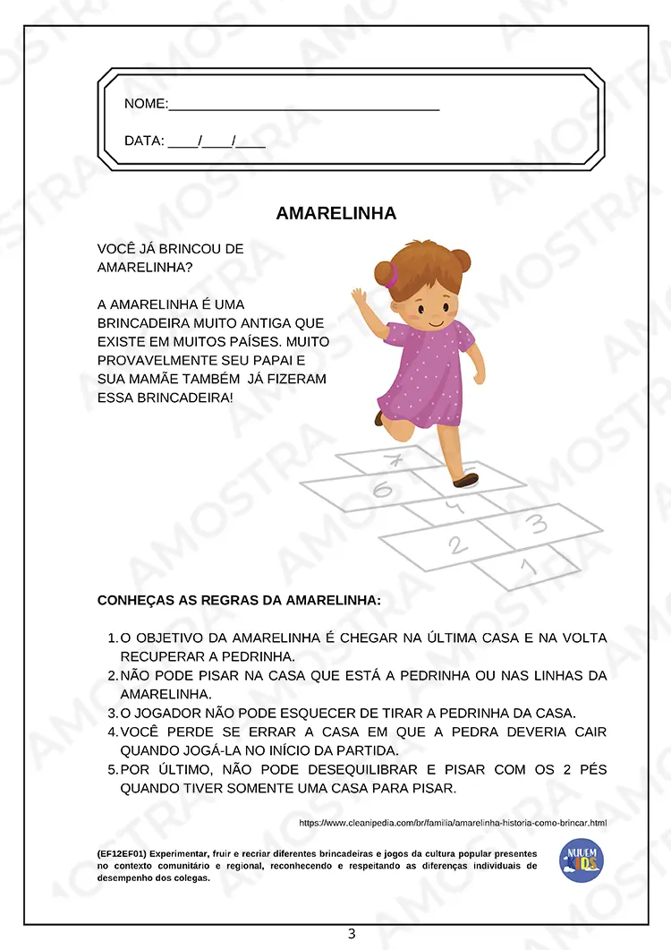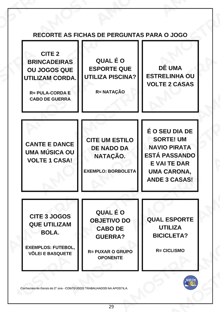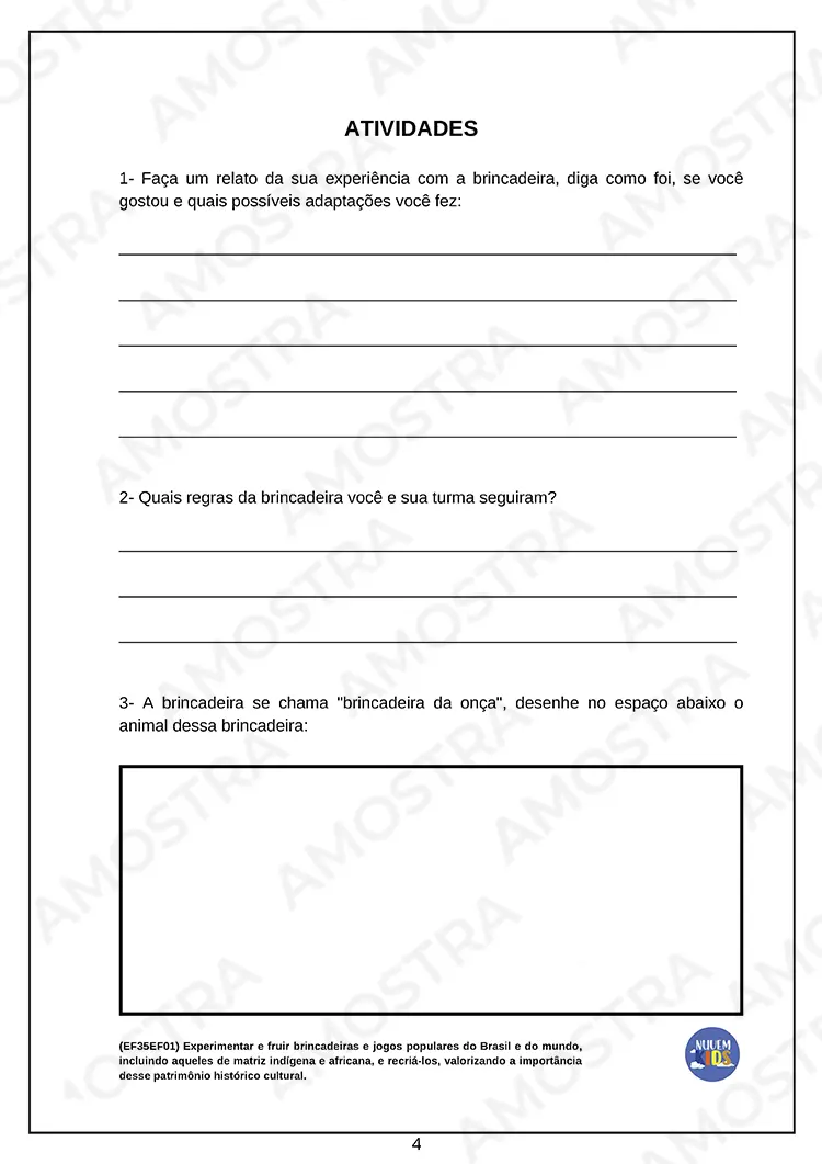 Tenha acesso a uma amostra onde você pode imprimir as atividades...