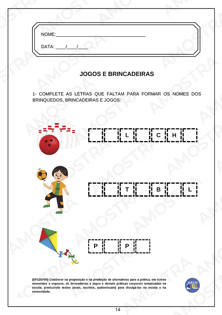 Você irá receber 150 páginas de atividades de educação física para o Fundamental 1 de acordo com a BNCC.