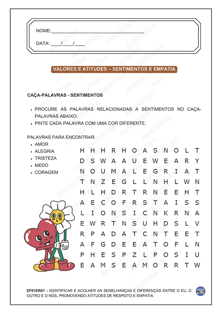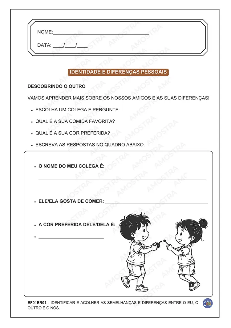 Tenha acesso a uma amostra onde você pode imprimir as atividades...