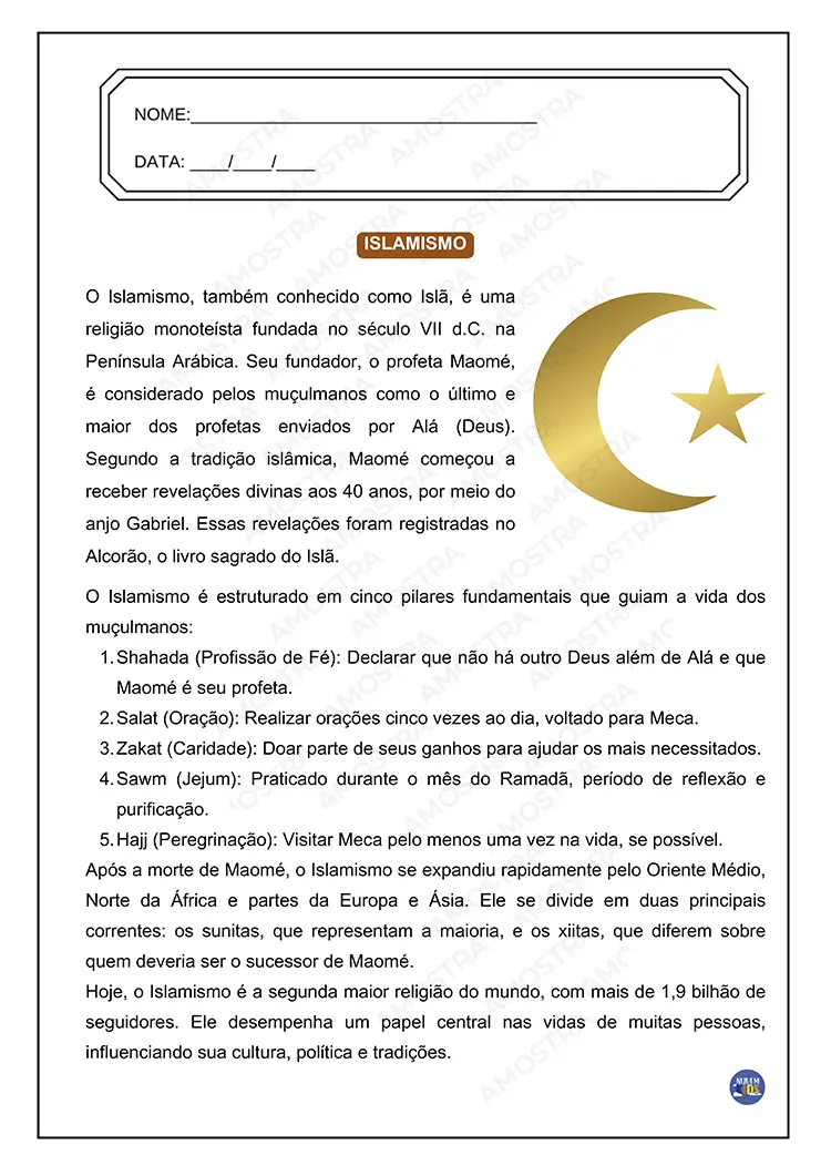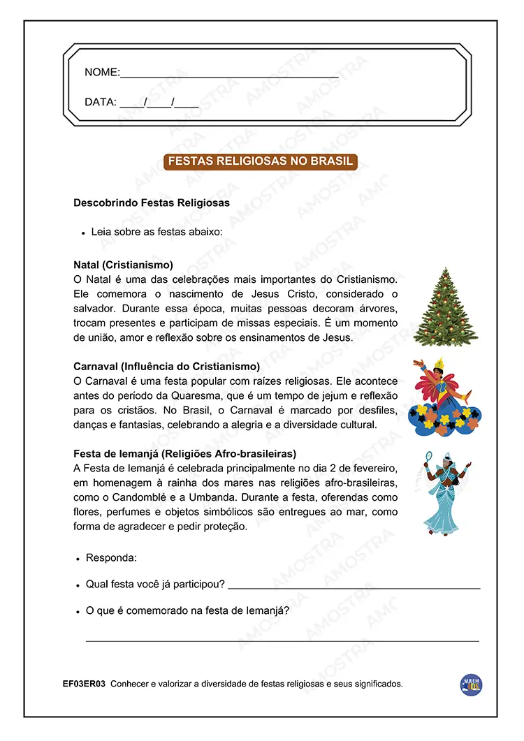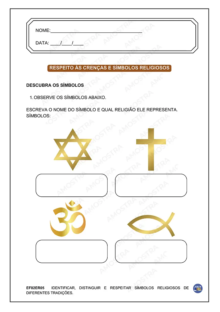 130 páginas de Atividades de Ensino Religioso para o 1º ao 5º ano Fundamental 1.
