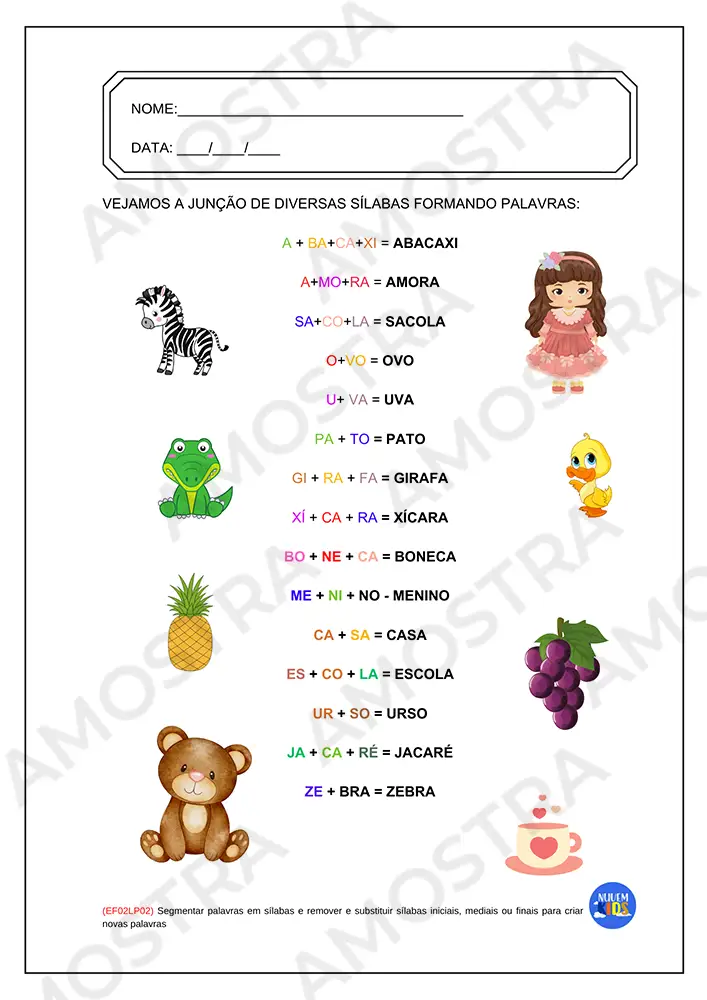 Os materiais da Nuvem Kids, após serem comprados por qualquer cliente, podem ser somente utilizados para fins pessoais, como aplicação em sala de aula.