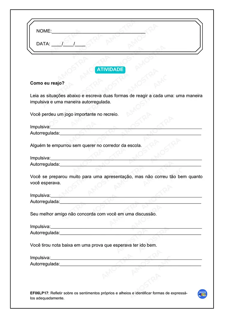 Lembrando que no material adquirido não terá essa marca d'água no fundo das atividades 🤗