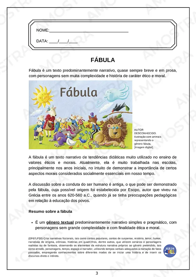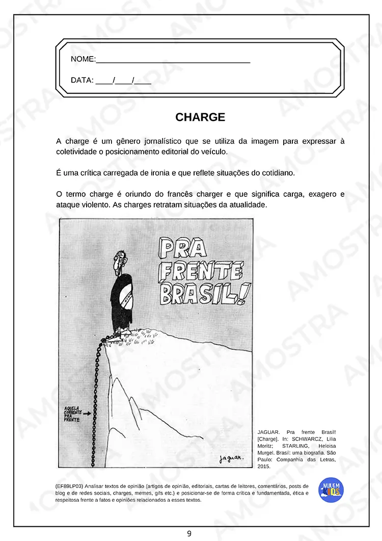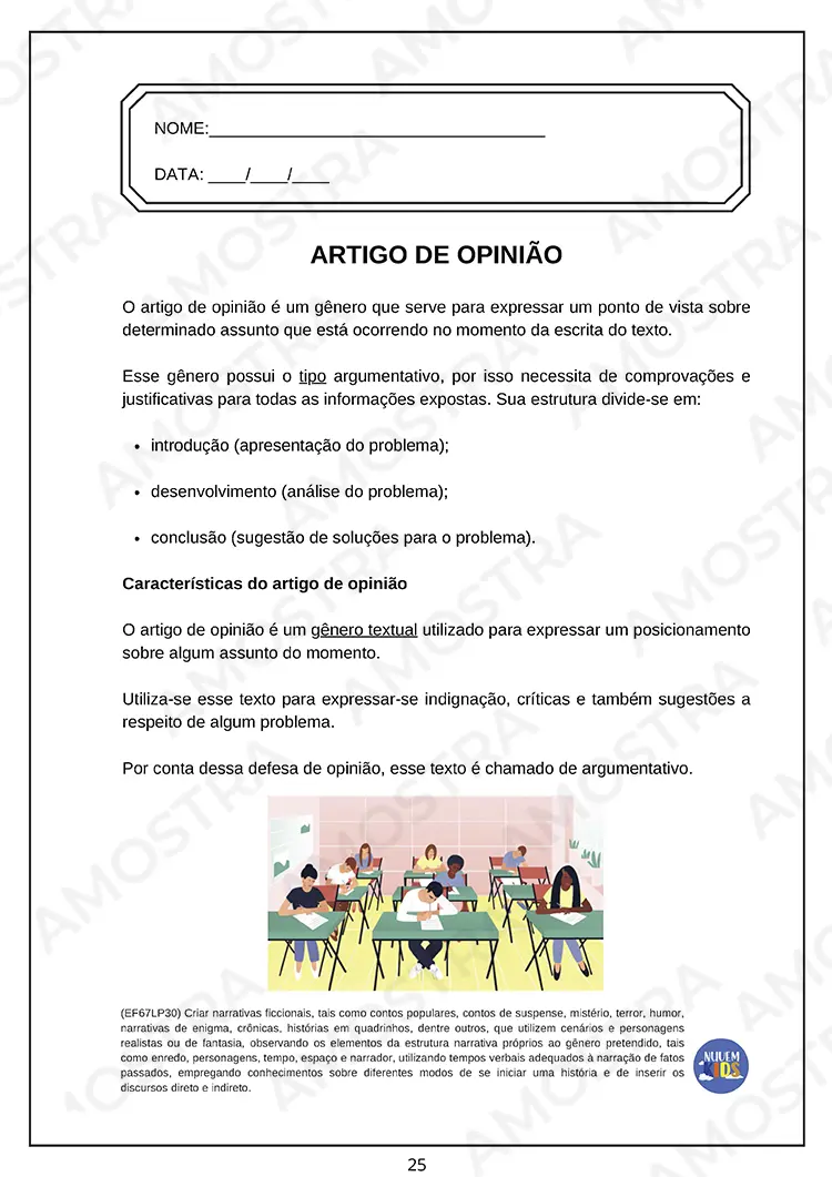 Tenha acesso a uma amostra onde você pode imprimir as atividades...