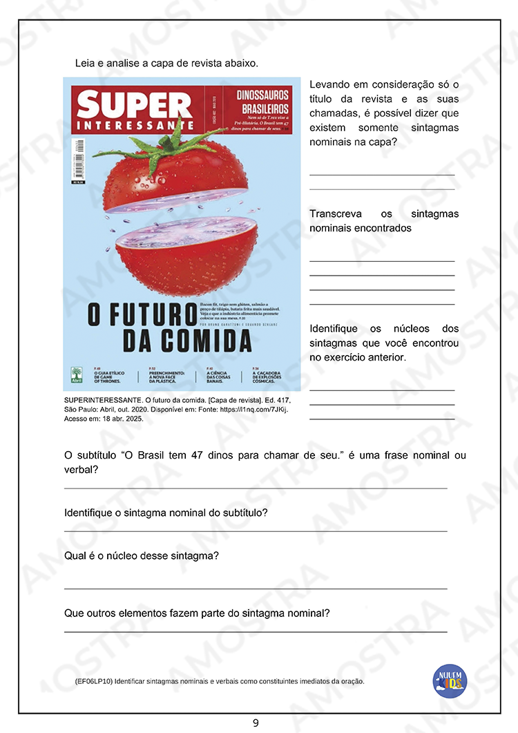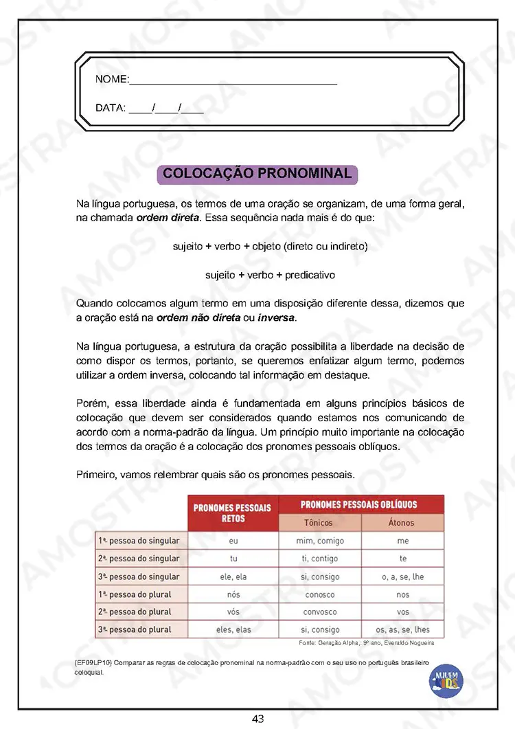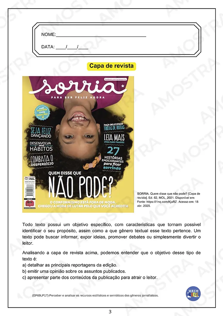 Lembrando que no material adquirido não terá essa marca d'água no fundo das atividades 🤗
