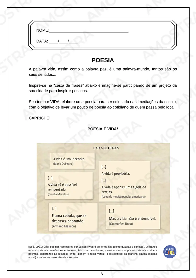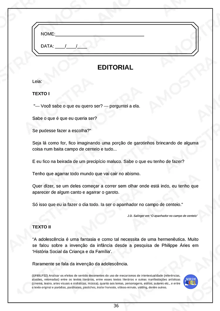 Lembrando que no material adquirido não terá essa marca d'água no fundo das atividades 🤗