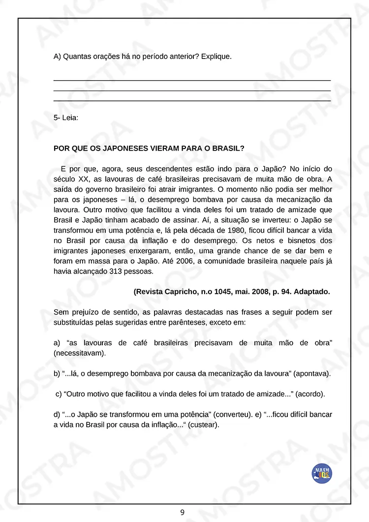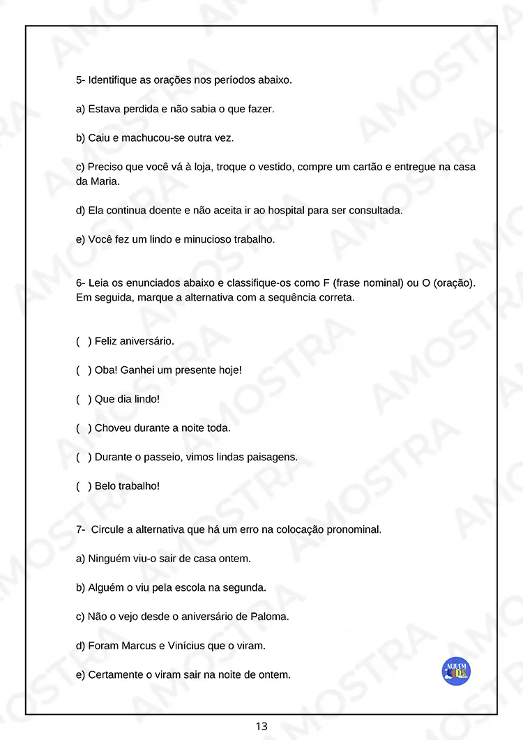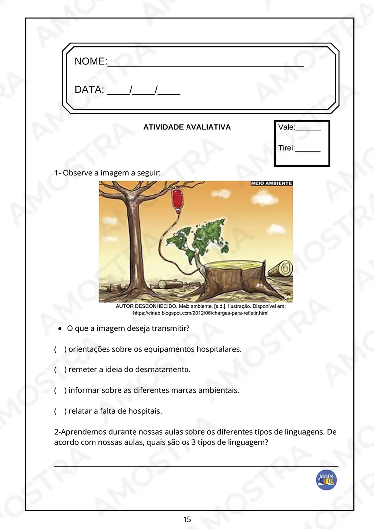 Lembrando que no material adquirido não terá essa marca d’água no fundo das avaliações e gabaritos 🤗