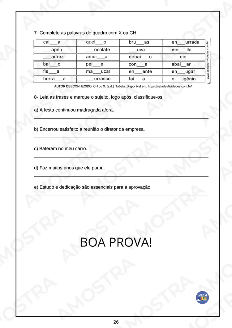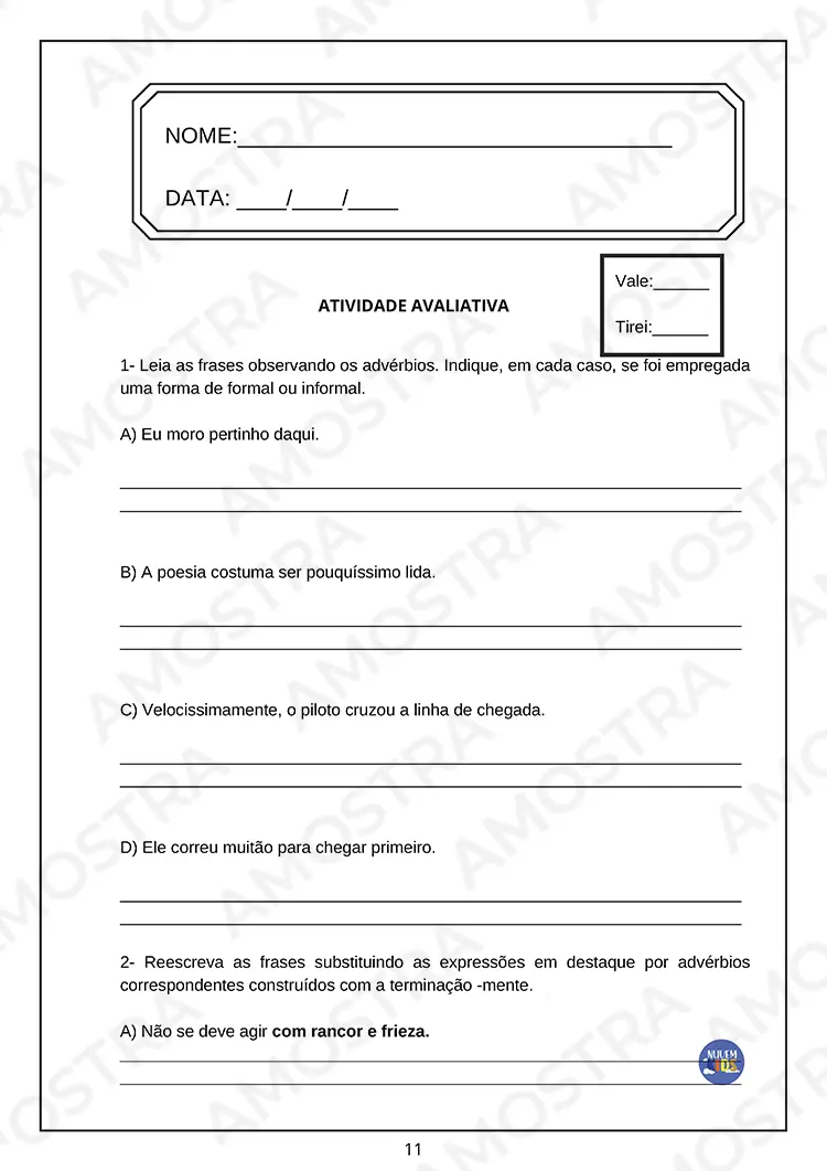 Então baixa uma amostra grátis exclusiva para você visualizar e até imprimir algumas das avaliações do material…