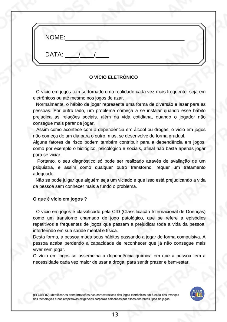 Lembrando que no material adquirido não terá essa marca d’água no fundo das atividades 🤗