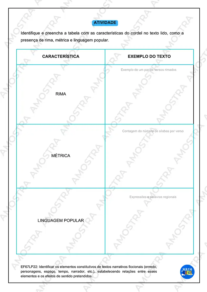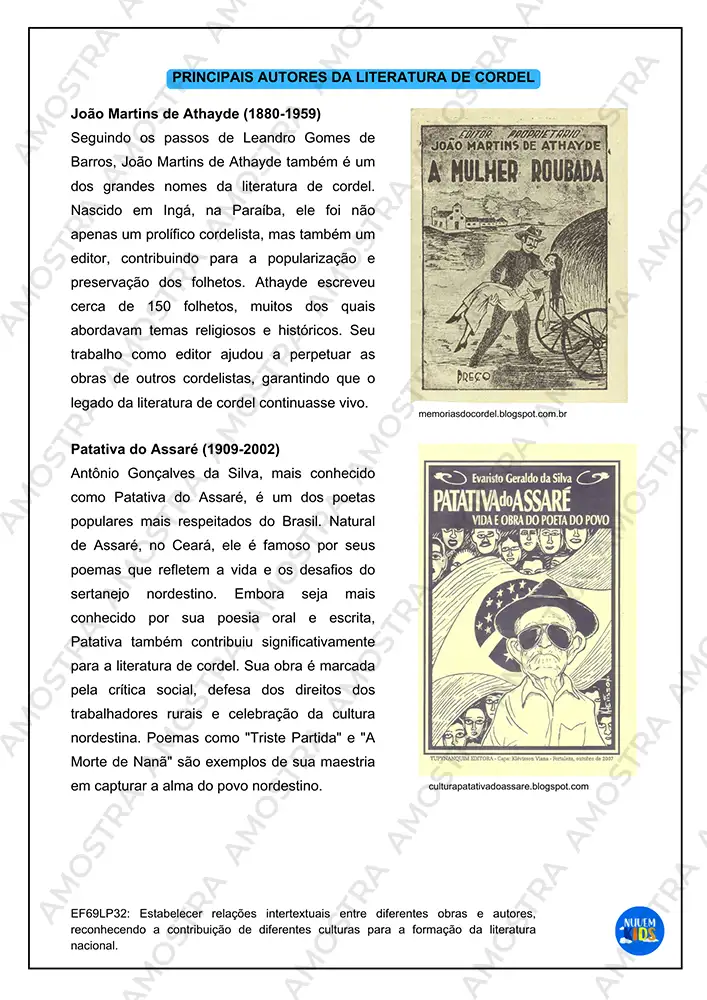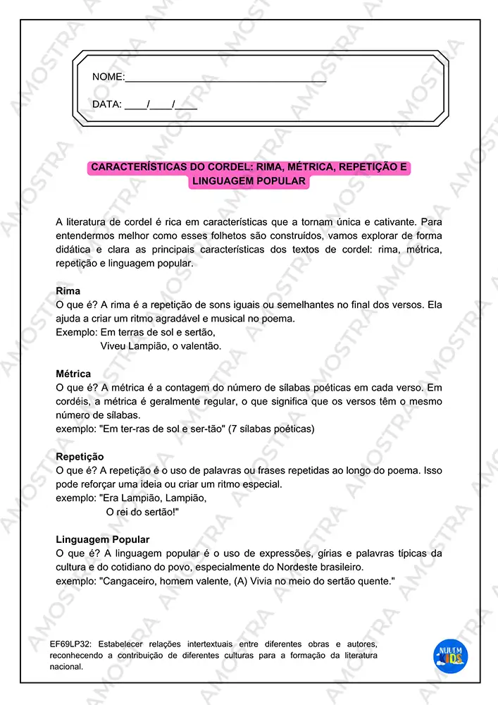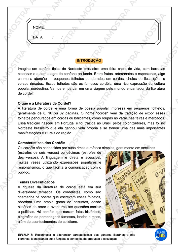 +20 páginas de Atividades de Literatura de Cordel para o Fundamental 2