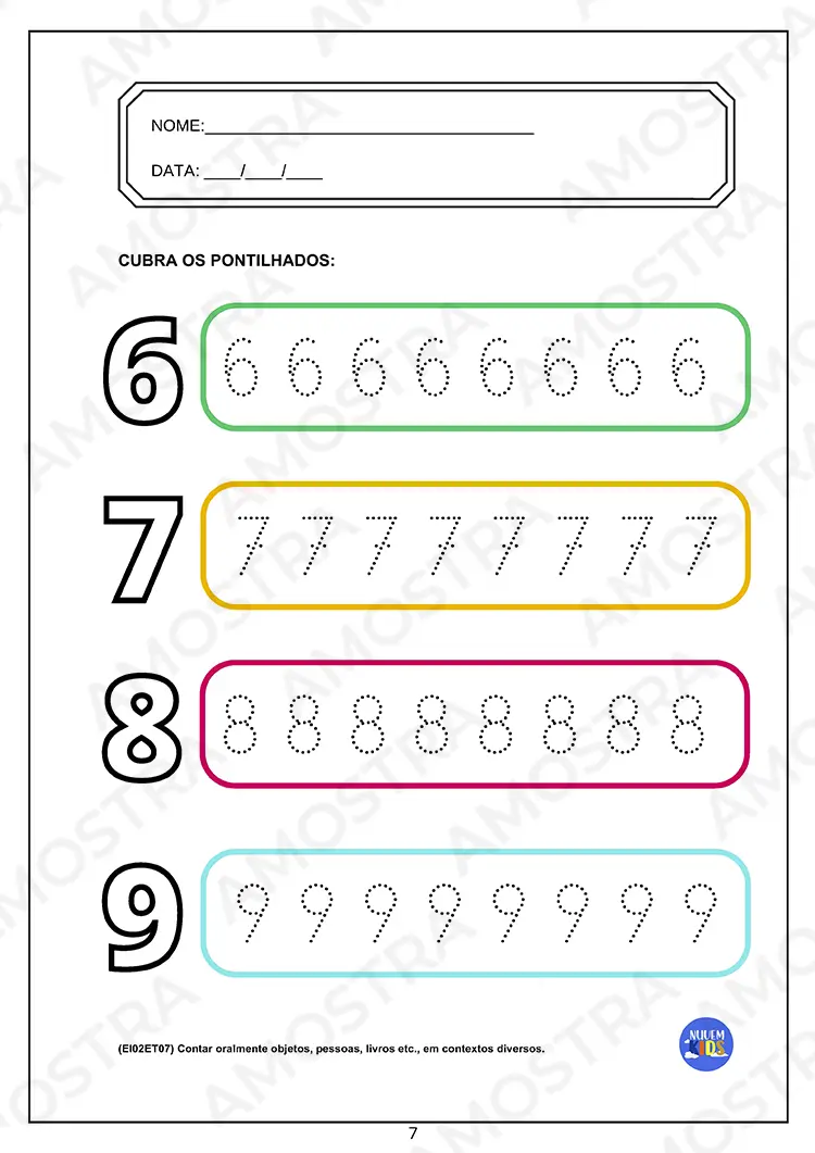 ✅Com os códigos das habilidades em todas as folhas;
