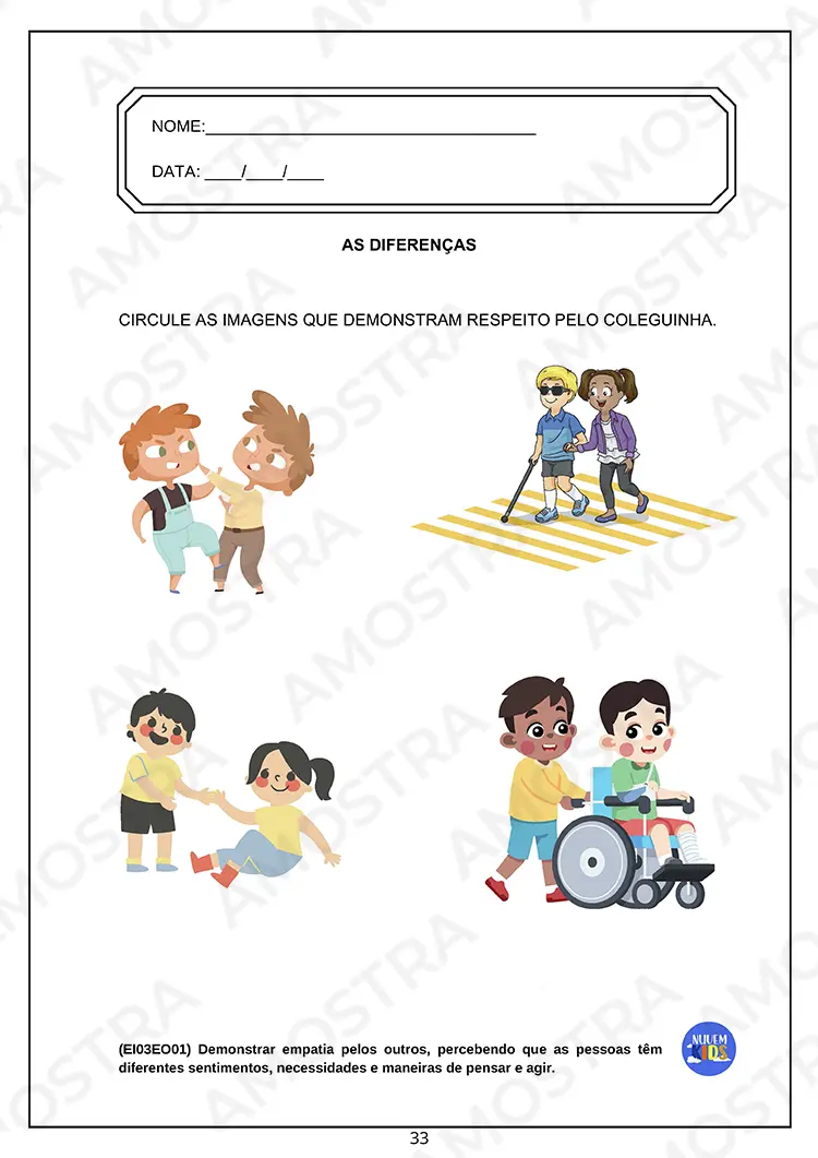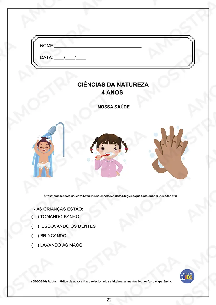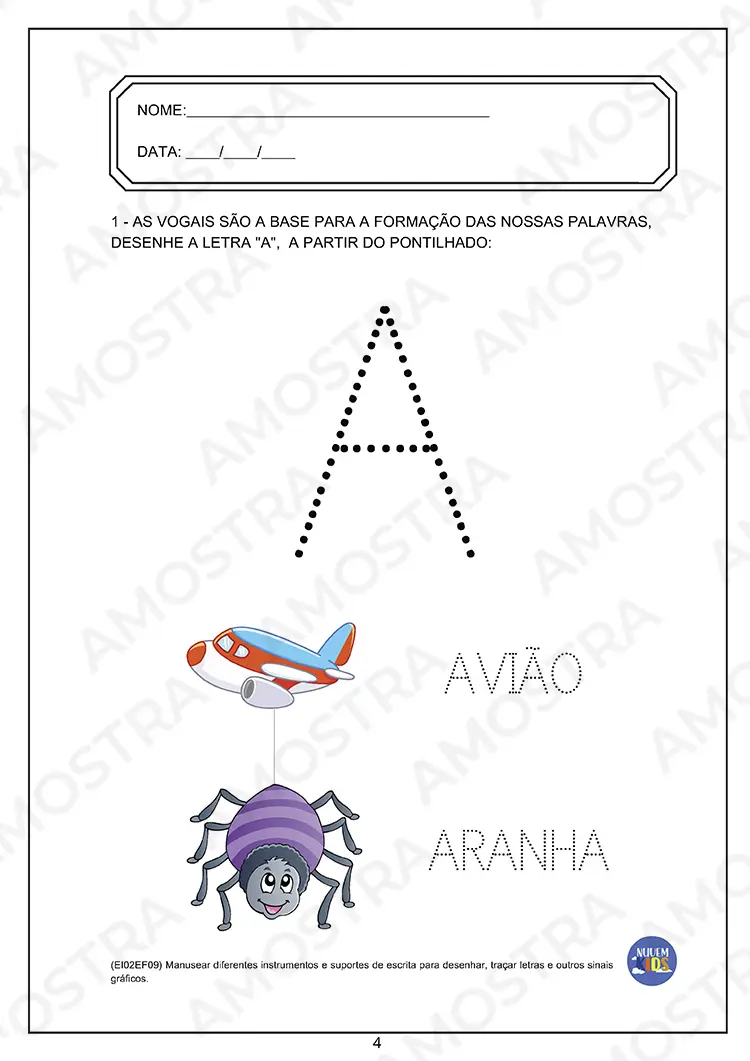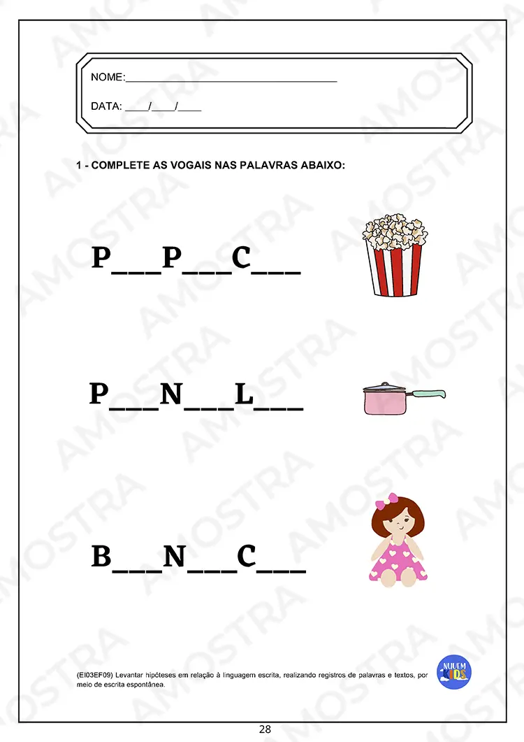 Tenha acesso a uma amostra onde você pode imprimir as atividades...