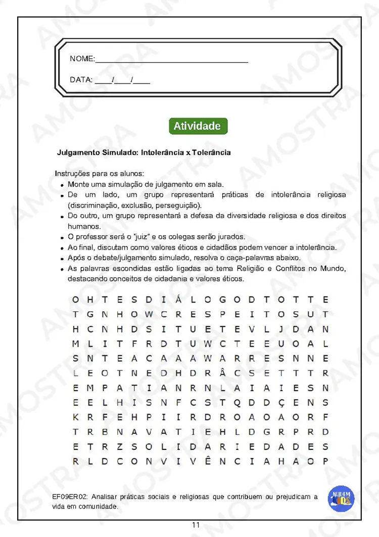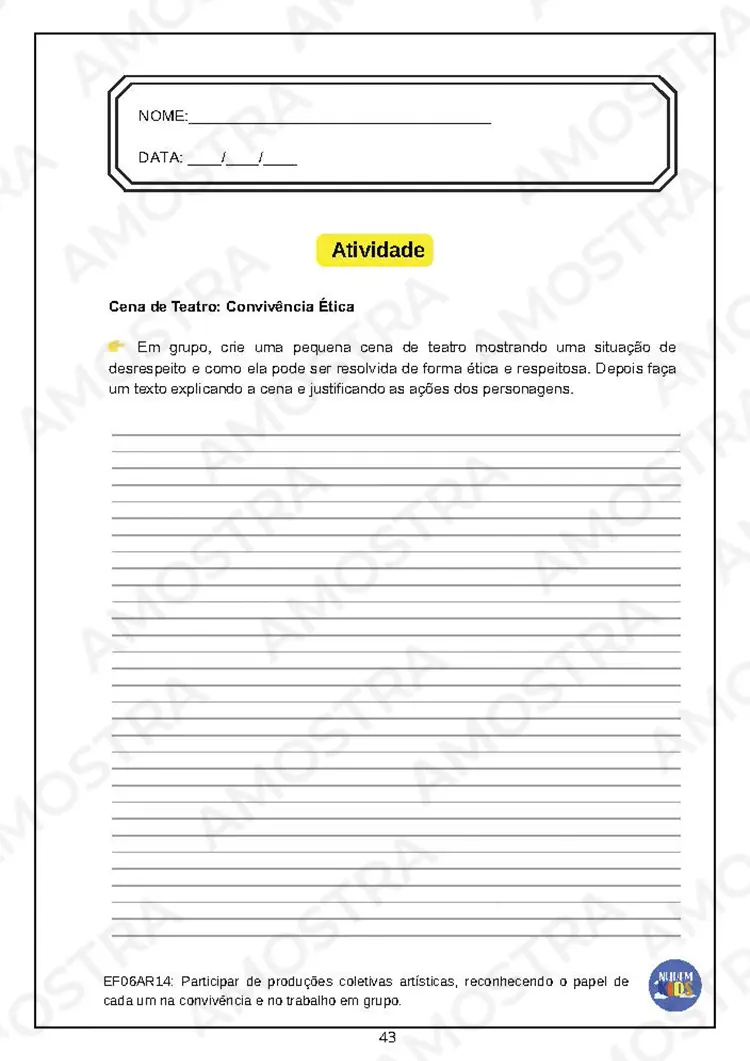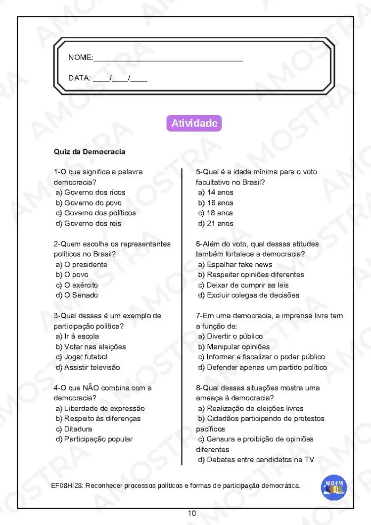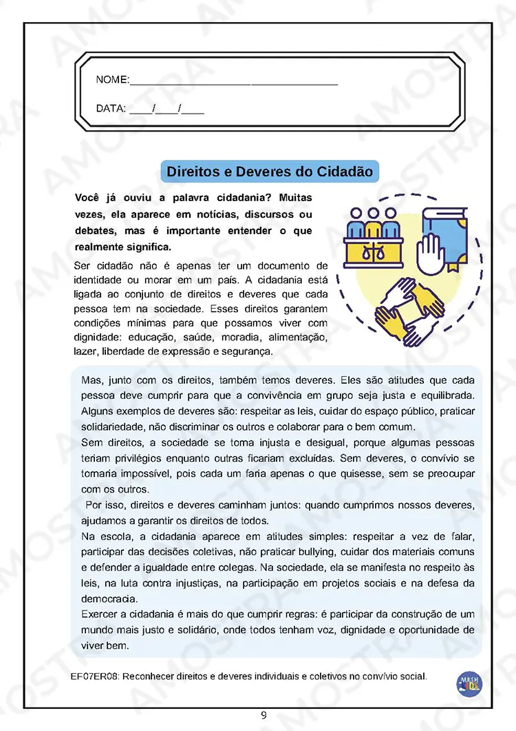 Lembrando que no material adquirido não terá essa marca d'água no fundo das atividades 🤗